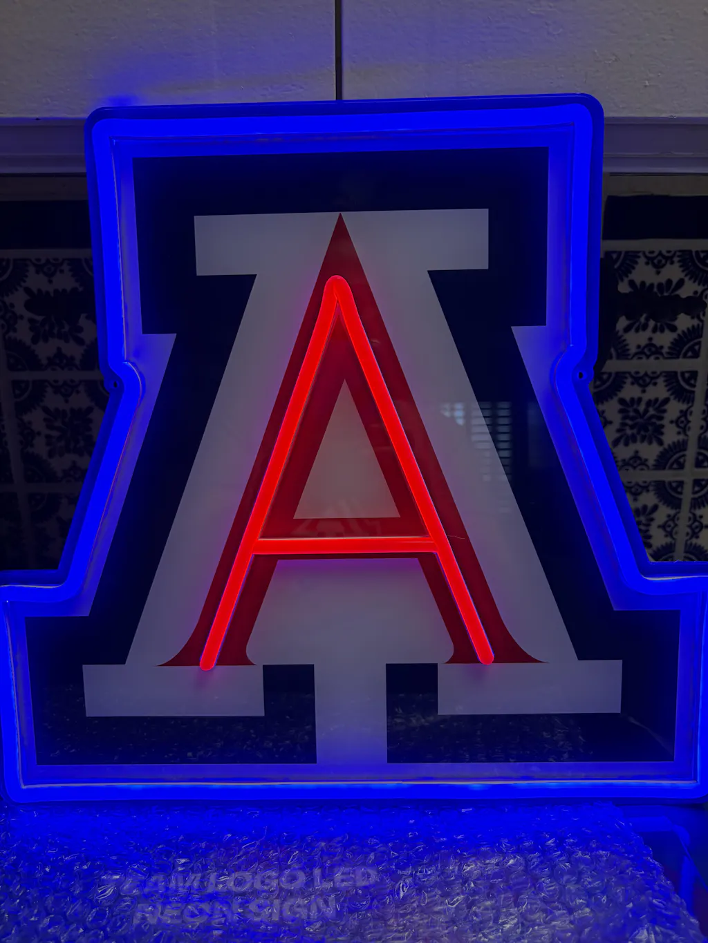 Yes, you can display your sign in a covered patio area. However, we recommend keeping it in a spot that’s well-protected from rain, humidity, and other elements, as the sign is designed for indoor use. If you do place it outside, ensure it stays shielded from direct contact with water to maintain its performance and longevity. It should also never be exposed to direct, prolonged sunlight. Prolonged UV exposure and thermal stress can lead to material degradation, discoloration, or warping. For best results, place the sign in an area away from direct sunlight.